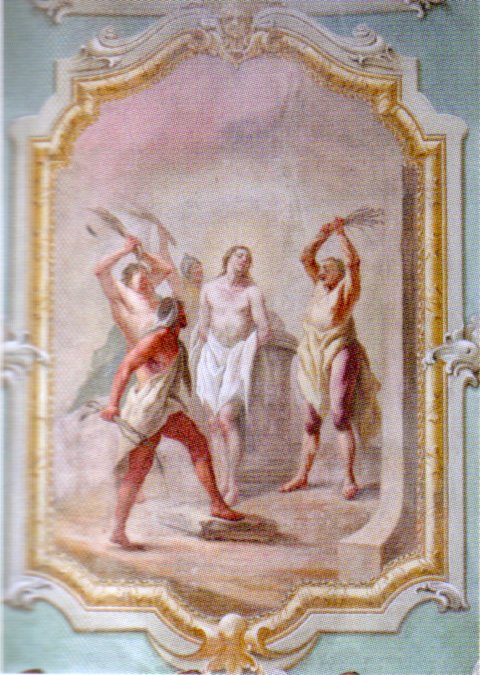 Im ersten Kuppelraum an den Seitenwänden, links - die Geißelung Jesu.